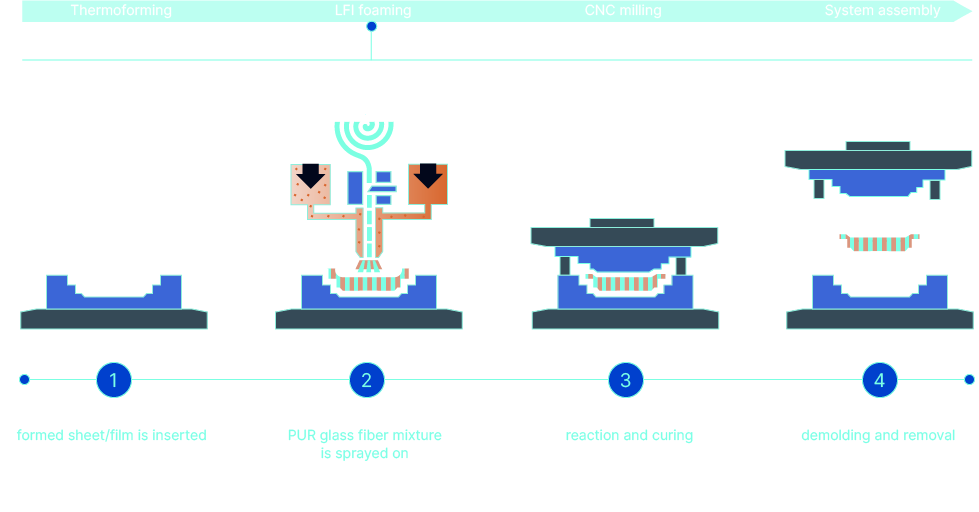 高品质、坚固、功能性LFI工艺用于生产由玻璃纤维和聚氨酯制成的复杂且高度稳定的塑料装饰部件。